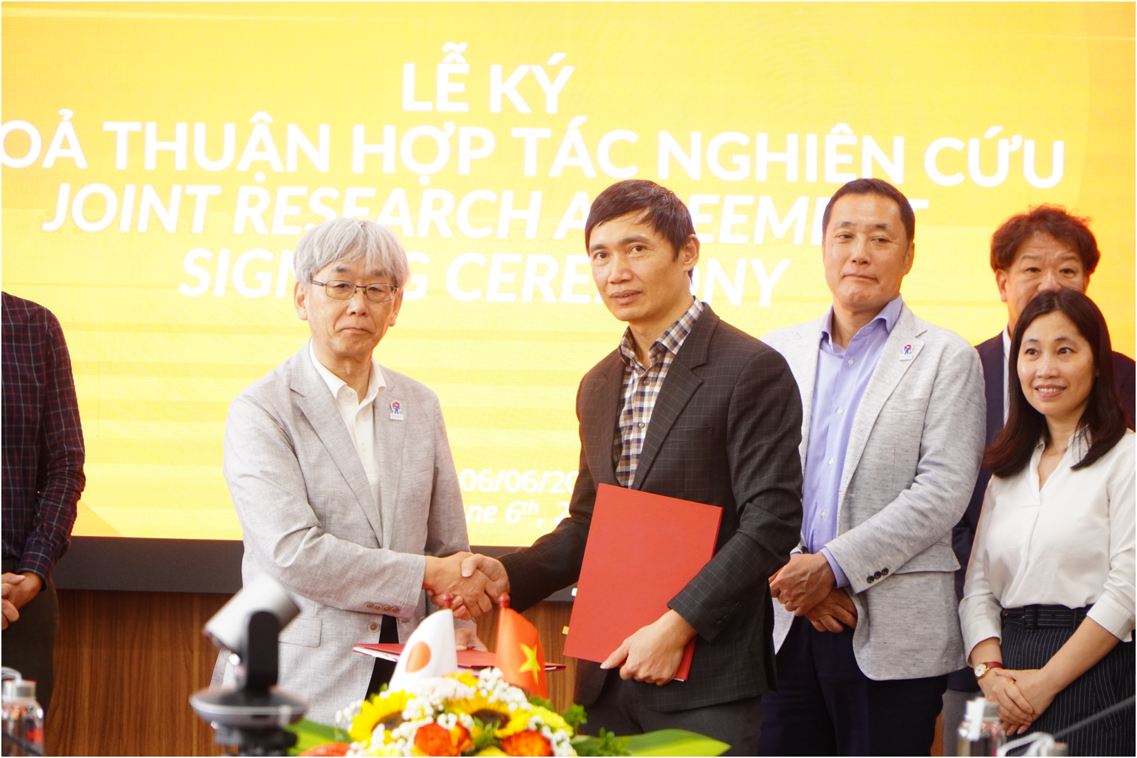 Trong khuôn khổ buổi lễ, các bên đã trao đổi sơ bộ về tiến độ và phương pháp thực hiện dự án nghiên cứu “Chiết xuất xenlulo từ thân cây chuối” và tổng hợp Cellulose Acetate từ nanofiber cellulose bằng dung môi ionic liquid. Dự án kỳ vọng sẽ đóng góp thiết thực cho ngành vật liệu sinh học, với nhiều sản phẩm hữu ích cho cả Việt Nam và Nhật Bản.
